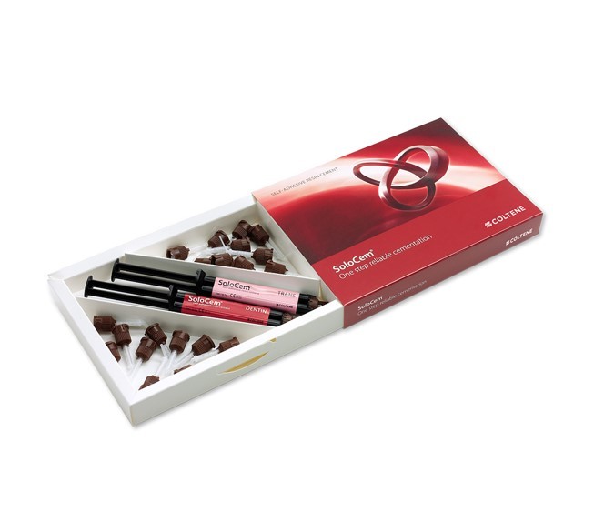 SoloCem is a resin cement for almost all indirect luting indications, such as cementing crowns and bridges, root posts, inlays and onlays on tooth structure or implant abutments. Depending on the situation, SoloCem can be used either self-adhesively or adhesively, in combination with ONE COAT 7 UNIVERSAL.